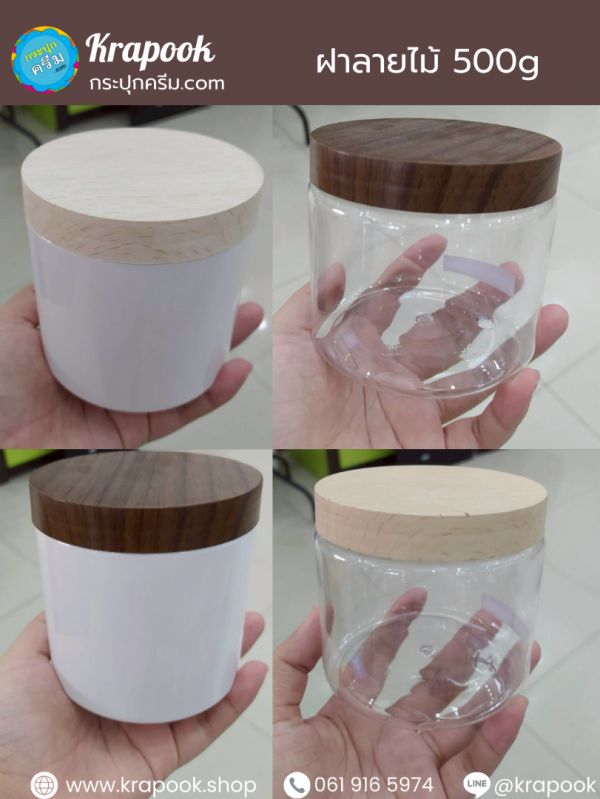 รายละเอียด กระปุกใส่สครับฝาลายไม้ 500g