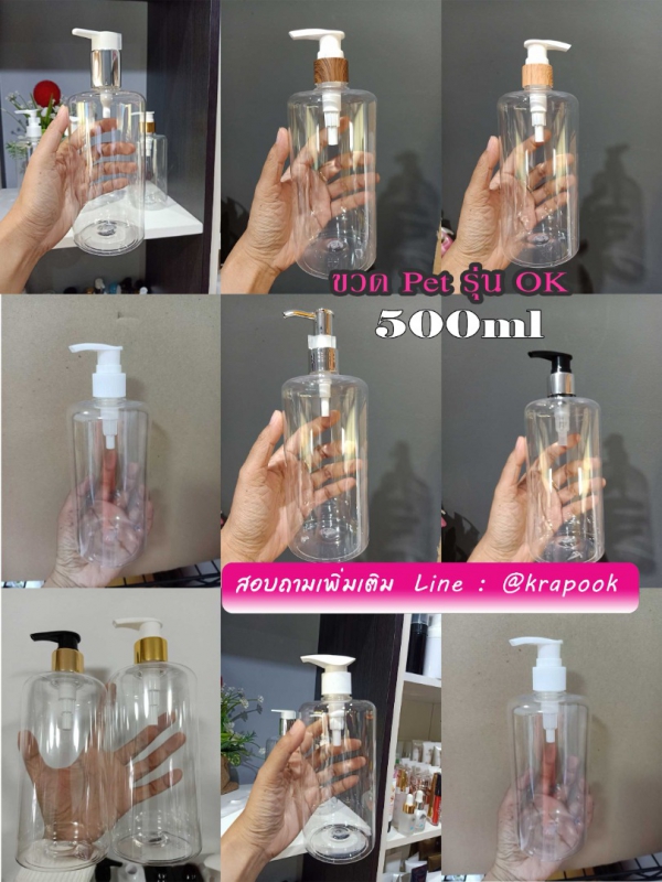 ขวด Pet 500ml รุ่น OK ไหล่มน สินค้าเป็น เนื้อ PET แข็งแรงค่ะ ใช้หัวปั๊ม คอ 24มม.สนใจสอบถามข้อมูลได้ค่ะ Line : @krapookอาจมีการปรับราคา สอบถามอีกครั้งนะคะ